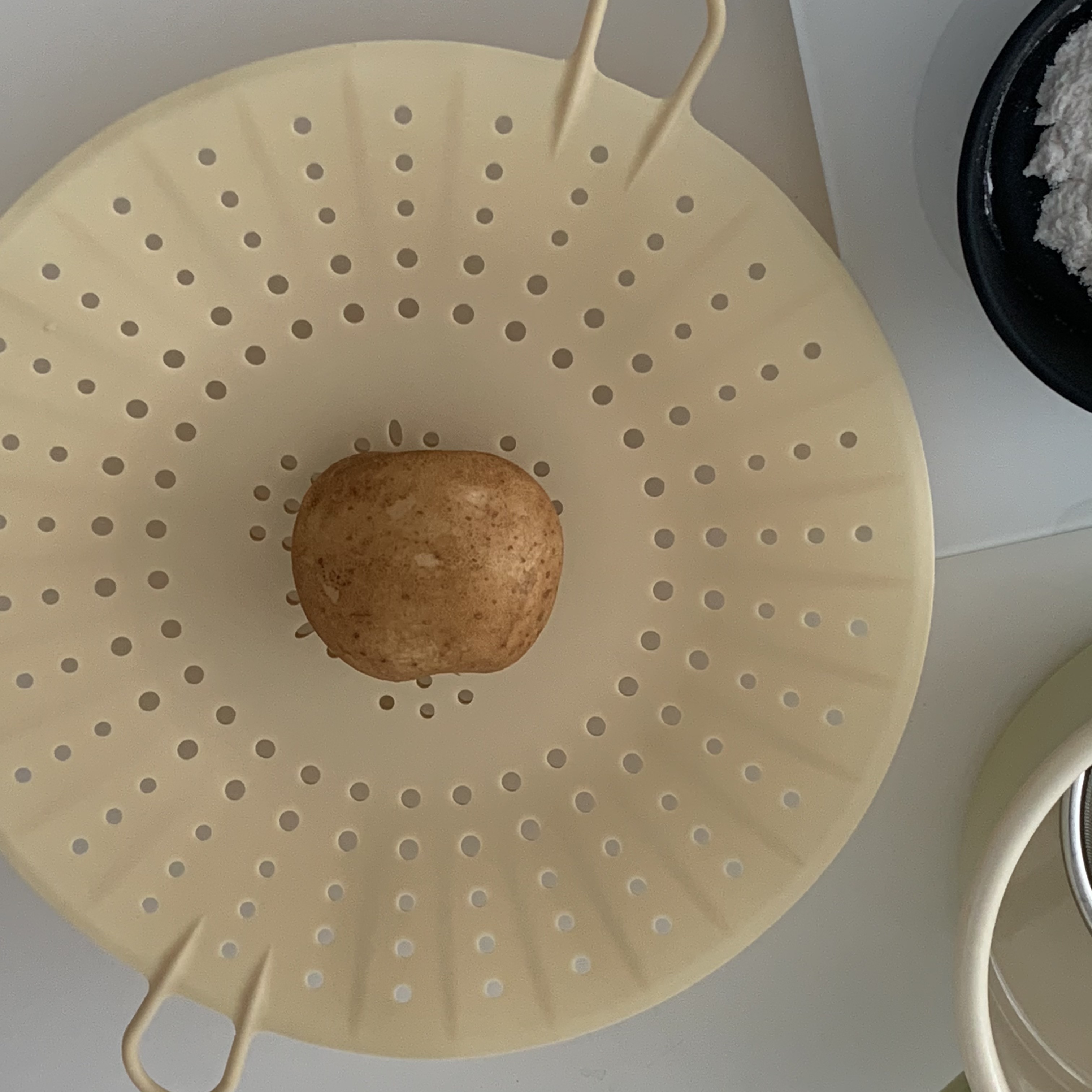 찜기에 감자를 올려놓고