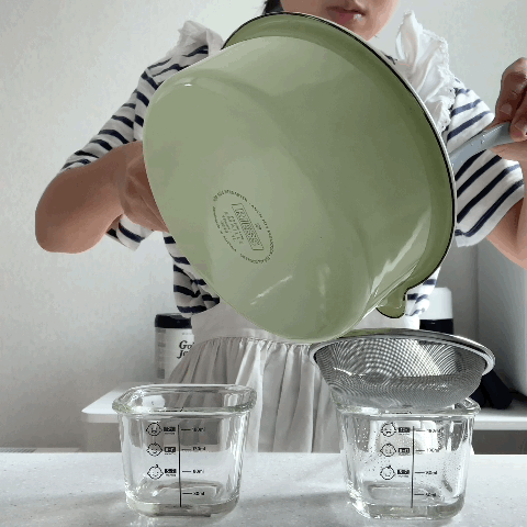 다 된 감자미음을 체망을 통해 부어주고